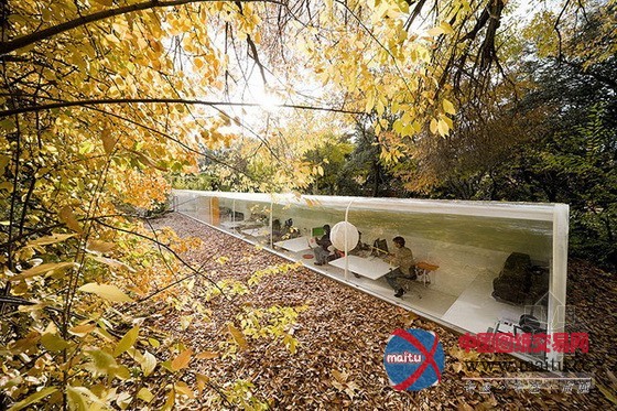 西班牙建筑公司Selgas Cano设计并建造了这一令人赞叹的下沉式办公室,给员工一个奇特的视角来赏识周围的彩色的丛林。这个出格的工作室坐落在马德里,建筑的整体轮廓呈流线型,内部的空间由一个曲折的玻璃幕墙围成,如许既可让里面的员工看到周围丛林的斑斓的风光,又可以节流室内白日照明所耗损的能源。