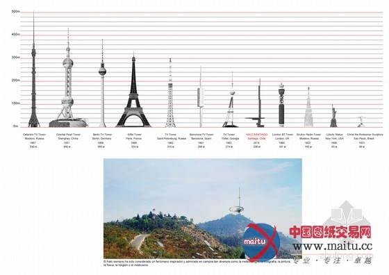 architects of invention设计的“光环圣地亚哥”,荣获“托瑞圣地亚哥”设计比赛三等奖。塔假想为圣地亚哥地标,背后的概念设计源自智利的大年夜量的活火山,构成一个动态的一缕烟,向天空升起。晚上, 从一个圆形不雅景平台犹如火山喷发,一个光环在山岳的上空回旋。光环外形一向被觉得是一个凸起特点,带有摄影、绘画和宗教色采。高塔和光环优雅地与其周围山区与临近的圣玛丽的雕像彼此呼应。