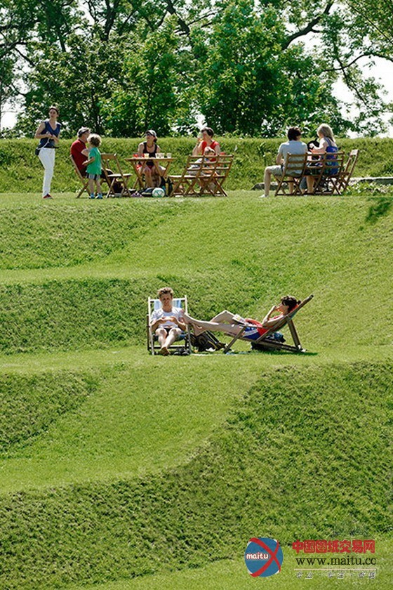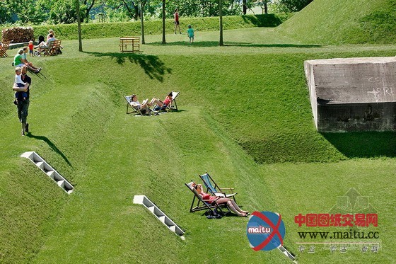 设计的灵感来自于场地内丰硕的汗青信息,可以将该灵感理解为一个巨大年夜的草坪雕塑场地,连络了新旧汗青元素,如战壕掩体、防弹建筑物和一个露天剧场。该项目将一些本土的处所性勾当组织起来,是以构成了一种新型的公共空间,并且有潜力成为“新荷兰水线”上最具吸引力的景不雅之一。
