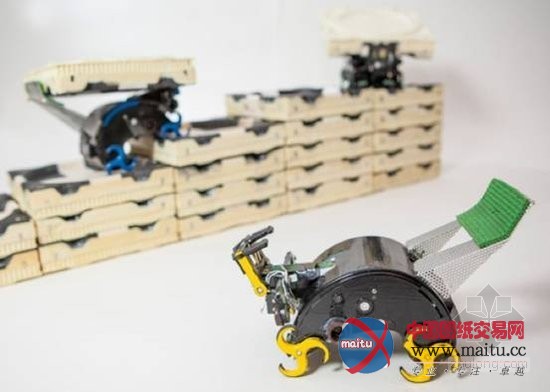 这些名为Termes的机械人也采取了不异的编制构建房屋。与其他机械人,例如制造汽车的机械人不合的是,这些Termes机械人不需要集中节制,也不需要彼此交换的复杂系统。每个机械人都有一套机轮和一只搬运手臂,手臂前端带有一个安有弹簧的钳子。这些机械人利用红外线传感器辩白吵嘴色彩的砖块,并利用声波进行导航。