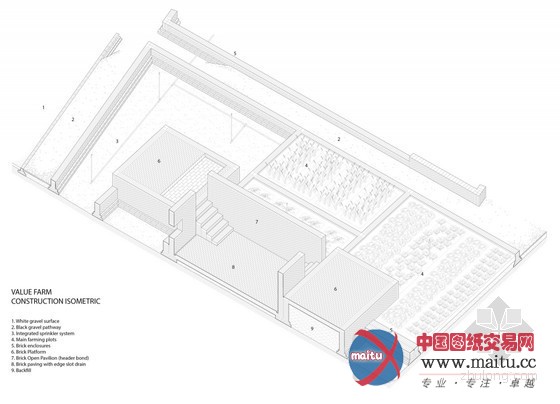 设计师的这一概念在前财产区空置的厂房的屋顶长进行试点。“屋顶农业的地盘”以砖砌围墙进行划分,不合高度的泥土莳植不合的作物,本来的楼梯区域也变成开敞的平台以适应将来勾当的需求。植物的浇灌利用了进步前辈的喷灌系统,浇灌用水则来自于本地的地下水源。场地中还设有儿童勾当空间、投影空间和揭示空间等。