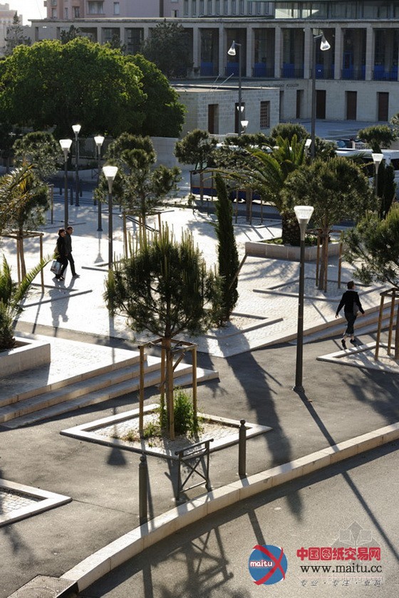 法国马赛圣查尔斯火车站是马赛首要的根本交通举措措施,它在城市中日趋首要的地位需要火车站前增加一个大年夜广场来进步其范围,以适应火车站的功能需求,并揭示出杰出的城市风度。这是一个持重优雅的多功能勾当空间。火车站前的坡面被三个首要的平台划分,每个平台用本地的石灰石材质展设,植被采取的是耐旱植被,树荫下有舒适的憩息坐位。