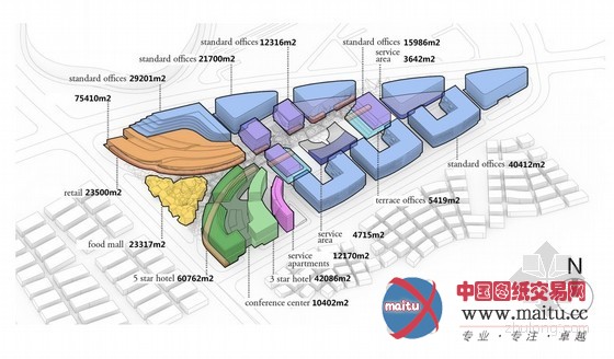 UA 的整体打算将18.4公顷的办公和零售中间分为两个部门:UA Studio 7设计的办公区“八叶花”,和由Aedas设计的有“弓曲线”的购物、酒店、会议中间调集体。按照UA说,中标方案的设计的高度节能建筑连络城市打算,带来更多便利行人的空间。 “中间办公区为‘八叶花’的情势,从而租赁单位为不合大年夜小的公司合用,”UA描陈述。“花的外形由4片花瓣衍生,四个塔的底部将在二楼归并成一个共享的公共大年夜堂,在一层促进繁忙的人流。场地的西侧,Aedas设计的弓形曲线指导人流沿着商业步行区达到购物中间、酒店和会议中间。该打算的节能和可延续功能包含绿色屋顶、优化建筑情势、透水地面和雨水汇集系统。获胜的提议,打败七家设计竞争,在封标仅仅几周后就开端扶植,工程扶植由绿地集体完成,定于2016年落成。