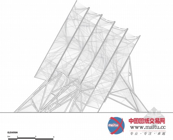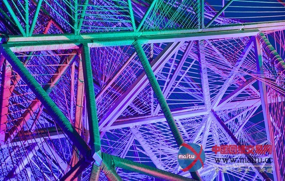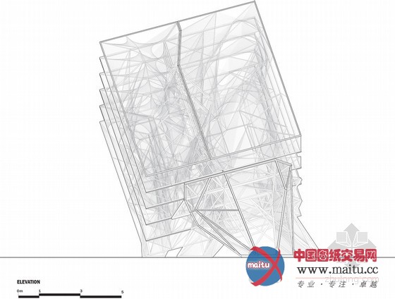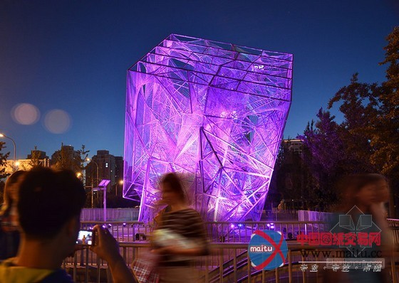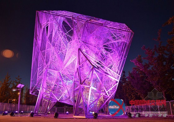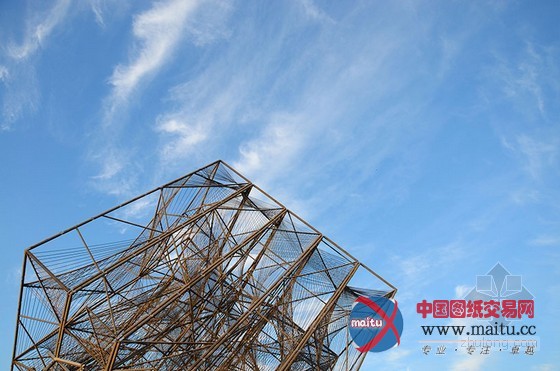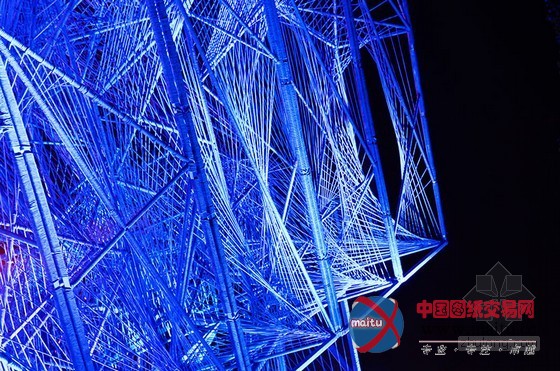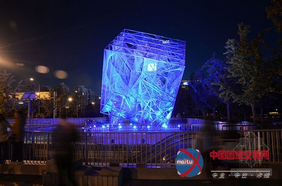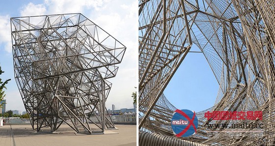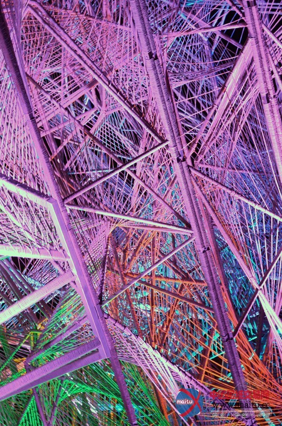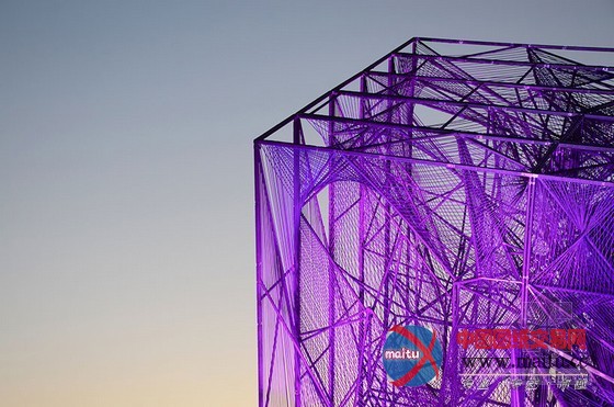 16米高的建筑由一个高大年夜的三维金属框架和环抱纠缠在上面的绳子构成。人走的越近,越能分解扑朔迷离的有机网状布局,这是一种全新的体验。向立方体内部看往,视野能透过度层的网,蜿蜒穿过弦状的迷宫。人们存眷的不可是雕塑物体本身,而是经由过程布局从整体的角度与深进细节的角度看是截然不合的体验。设计源于六个简单框架,每个长宽3米的方钢上用绳子环抱纠缠成二维的网。经由过程成立横向轴、用线连接各点和增加深度,就有了立体空间空间。设计师说“经由过程利用半反复的改变‘概况’手法,设计在复杂几何物体之间来回移动。最终,我们看到由直线改变成复杂物体的全过程——近似于我们在3D绘画中看到的。这个作品旨在让人们从外岛内理解空间物表实际上是一种壳、一种动态改变轨迹。”