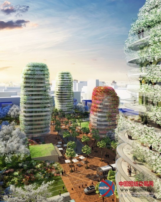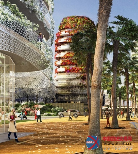 该打算中包含3栋高层室第楼、1栋低层办公楼和一系列由中间广场相连,并在一个郁郁葱葱的五彩山川中埋没的室第大年夜厦。每个“有机形”塔将被设计成格状的外不雅,培养的九重葛和茉莉将这些塔假装成花圃的山岳。