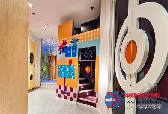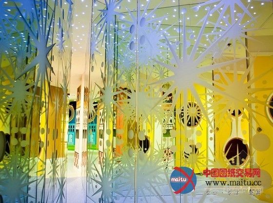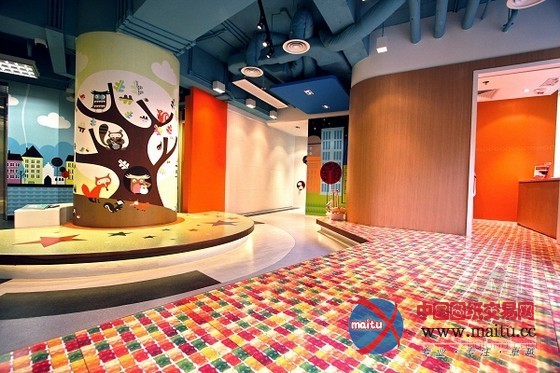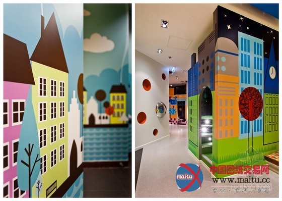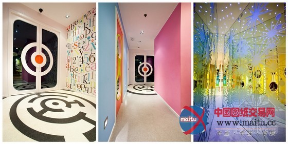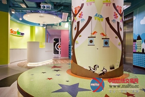 本案的全部设计概念旨在为孩子们成立一个宽阔、轻松的抱负进修环境。全部空间以位于大年夜堂中间的一座复杂年夜的圆柱体为中间,伸延至南北翼的课室地带,构成慎密连接的布局。设计师从纽约的中间公园汲取灵感,带出城市公园的休闲理念,装潢墙上的曼哈顿大年夜厦夜景与明媚的天然风光瓜代呈现,色采明快活泼。中间的舞台主圆柱上,其图案的主题则是——大年夜树为小动物的呵护所。这些设计真正表达出对孩子们的悉心培养,透过奇特的墙饰设计,从小灌注贯注绿色讯息给地球将来的主人。孩子的表情很等闲遭到方圆色彩的传染,在如许一个进修环境中,要应用恰当的配色方案,均衡色度和色调值是关头,再共同出格设计的有趣图案,能营建出喜乐、欢欣又有趣的空间空气。应用到主舞台及周边位置、墙饰、地台、课室门、通知布告版、走廊等处,可构成持续有层次的风光。鉴于小孩子老是对身边事物有着强烈的好奇心,设计师在南翼的走廊制造了一点欣喜—— “奥秘空间”。弯曲折曲的小小走廊,经由过程Z字形设计,可让小孩子带着喜悦的表情往上学;课室之间的捉迷躲之地,有着色采精明的外墙,登上楼梯倒是一个小小六合,激起他们的摸索精力;来到南翼结尾,可以看到一个以多角度的玻璃镜构成的万花筒,变幻出“永无遏制”的奇奥景象形象。