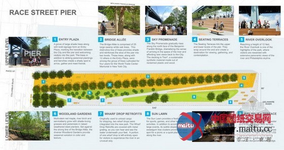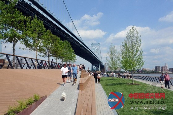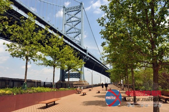 本来的Race街船埠始建于1896年,包含大年夜量的两层建筑,以知足各类需求;基层用来停靠船只,上层用来文娱。新的船埠也设计了两层——上层完美的露天漫步场,基层是社交文娱场合。本杰明.富兰克林大年夜桥北面有12英尺倾斜上升的斜坡,透视结果使你感触感染就要达到河边。多功能草坪上设有道路,既能坐又能躺。长长的道路座椅将两层连接起来,环抱了船埠一端,放大年夜了身处边缘的奇特感触感染。