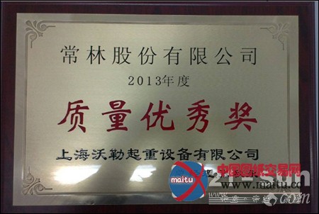 因常林股分公司在交货期、产品质量等方面的优良表示,在驰名的装卸设备制造商上海沃勒起重设备有限公司2013年度供给商会议上,被评为优良供给商,荣获质量优良奖。(本文来自常林股分布局件事业本部