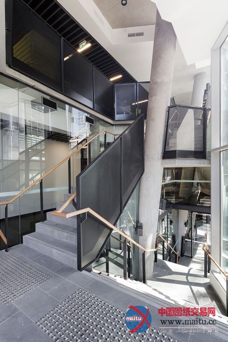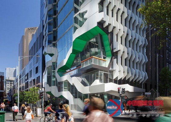 但他们一部门被切掉落,为晋升公共空间。“设计切磋了拼接的公共和商业建筑,经由过程连接城市街道空间和研究所,” Lyons主任Adrian Stanic说,“从弗林德斯巷可见一个主楼梯,使建筑成为一个公家介入的核心。”AIA是该项目标客户,据有了建筑的此中五层,让15商业租户免费租用剩下的房间。“该项目使所有者或租用者者成立他们本身在全部楼内的身份,在这个城市的角落里成立一个奇特的垂直商界 ”Stanic弥补道。澳大年夜利亚公司Hassell负责AIA的五层室内设计。这些包含一楼“设计港”包含一个名为Architext的建筑和设计书店、作为公共会议空间的咖啡馆和一个会议室。屋顶有一个露台,而自行车存储和***室都在地下室。