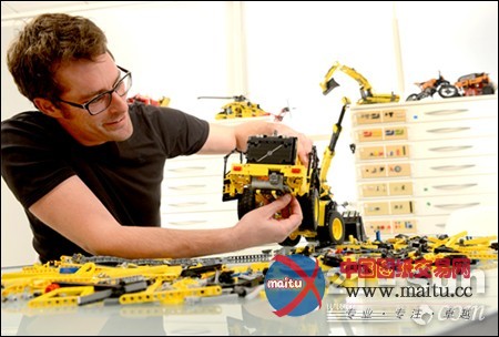乐高机械设计经理Jeppe Jul Jensen正在拼装沃尔沃L350F轮式装载机