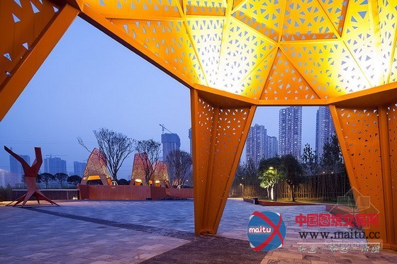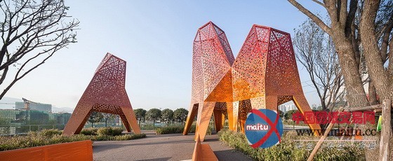 尽人皆知,山城重庆的地形较为特别,高差较着,会对人们的出行造成比较大年夜的影响。可是这同时也为人们从公园路口到万科售楼中间的路程供给一种奇特的景不雅特点。设计师就是从重庆的地形特点获得开导,设计出一座座山形的景不雅雕塑。