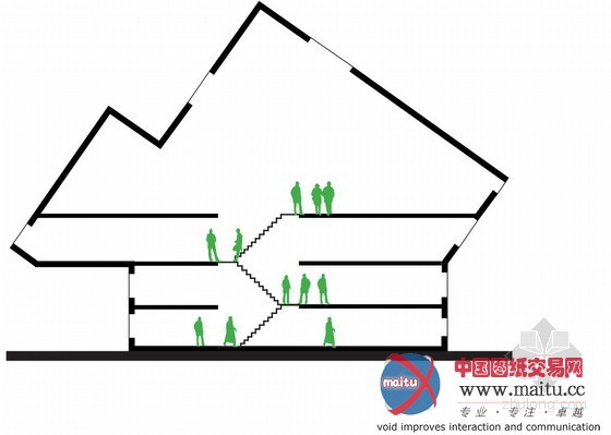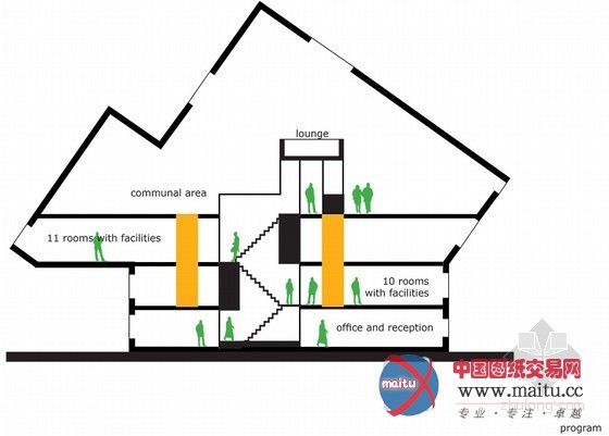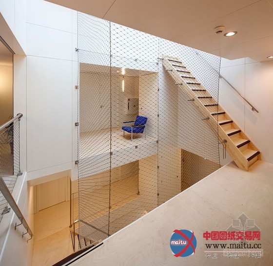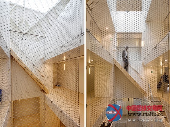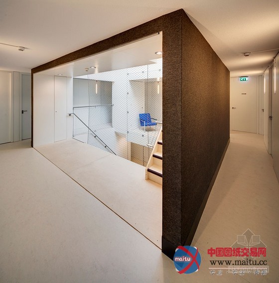 在建筑师眼中,最初的设计包含三个首要标题问题:楼层之间的不持续,乏味的竖向机关和暗中不便利用的中间层——旨在创作发现有益于被禁锢罪犯重返社会的环境。一个简单而判断的改革大年夜大年夜改变了传统的感触感染和功能布局:垂直矩形轴透过地板,在屋顶上开了个天窗。这个核心架构使阳光可以或许进进更大年夜的空间,创作发现了视觉上的连通。它也是楼梯的撑持布局,同时包含了办事欢迎、厨房、洗衣房、卫生间、存储等功能。