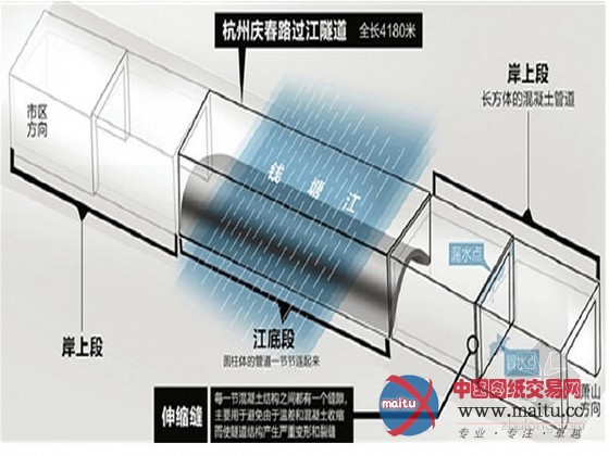 庆春过江地道全长4180米,可以按照所处的地舆环境将其分为两部门,岸上段和江底段,专业说法叫“明挖段”和“盾构段”(详见教意图)。“在岸上,像挖深坑一样,然后把长方体的混凝土管道,一段段放进往,再用泥土盖上。进进江底施工就改成盾构机掘进了,所以江底是圆柱体的管道一节节连起来的。”