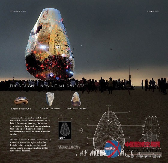 摘要:进围国际比赛,美国人thomas series的 “设计灭亡”、“我最喜好的处所”诠释了记念和安葬记念地址的互动雕塑。设计是一个巨大年夜型蛋形雕塑,直接放在公共范畴。
