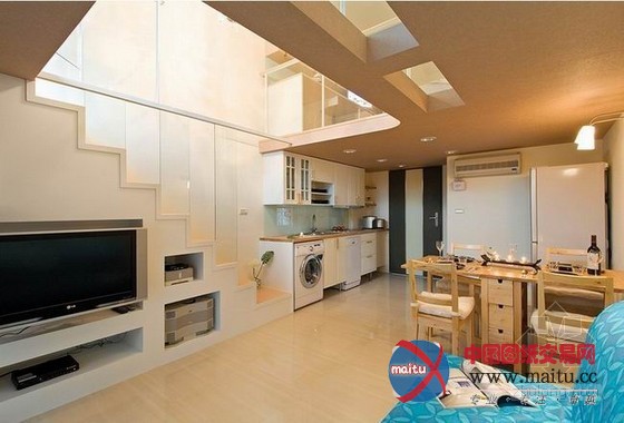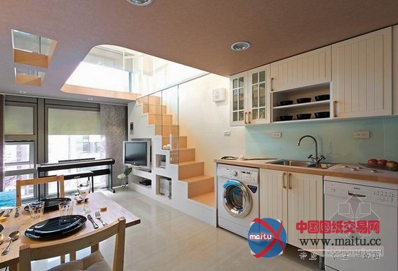 28平米通透感夹层室第,由雅士室内设计企业有限公司洪俪芹负责设计,碍于坪数小,洪俪芹设计师以精练有型来打算本案,操纵夹层地板的篓空设计,借由强化玻璃镶崁的手法,让人有种安步云端的趣味感。设计师将解构立体容积的谙练设计,注进了跳跃动感与放大年夜坪数的空间感,夹层屋一样可以创作发现出久看不腻的居家风情。