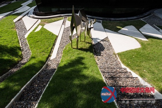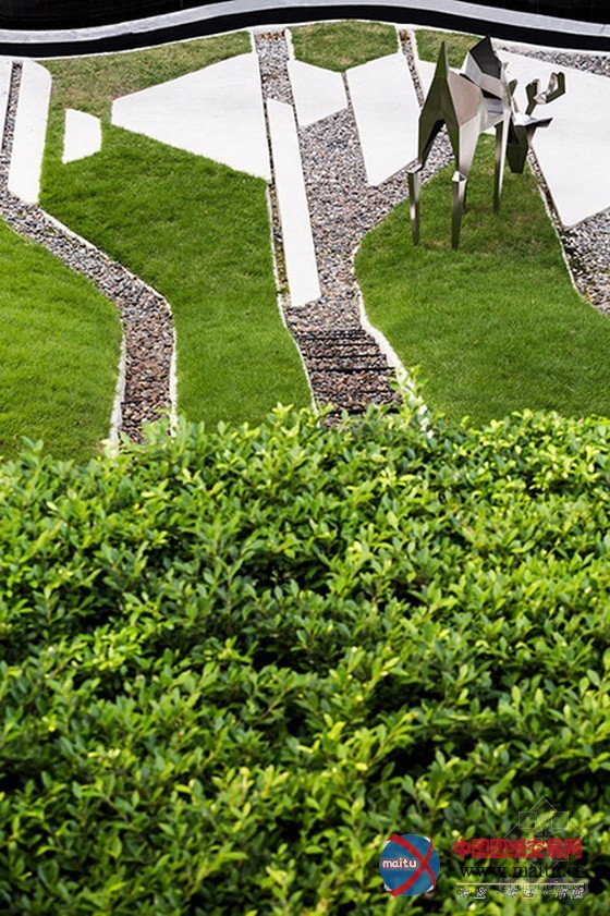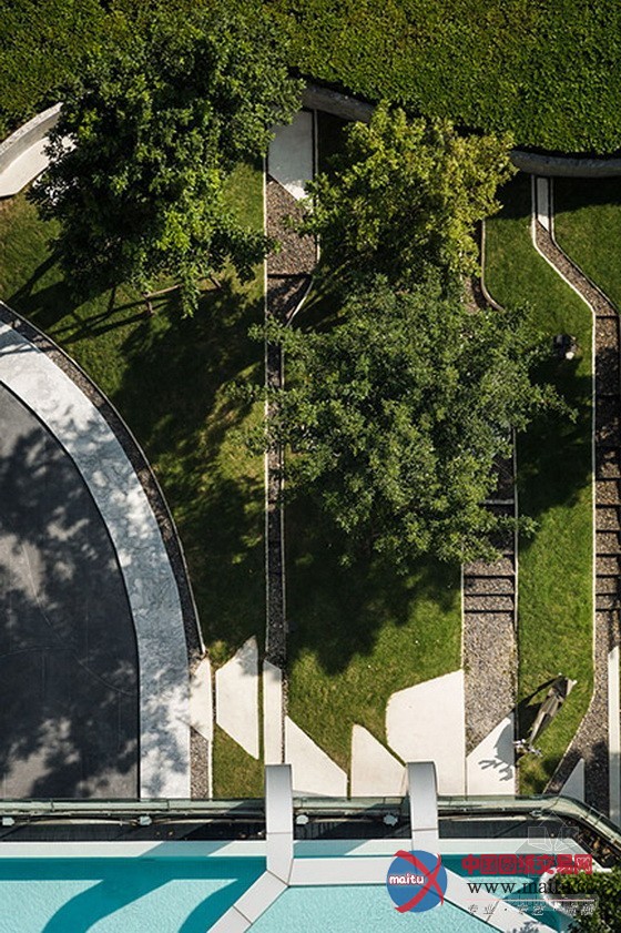 根基上,我们的首要任务是将项目标场地和周边欠都雅的环境分手开来。为了将私家空间与繁忙拥堵的外部空距离分开,我们的第一步是成立一个3米高的围墙,顶部莳植植物。从外面看,围墙仿佛像一个正常的笔直的白色大年夜理石墙壁,可是,从内部看,墙壁被设计成曲线线形以摆脱四四方方的空间感触感染。绿色区域坐落在墙后面,位于在火车站和公寓之间,不是典型的功能性花圃,而是一个城市丛林,内有10米高的树以削减车站对公寓的影响。在树下面,是连绵到墙边的一系列的绿色小山包,右边与大年夜厅相邻。为了最大年夜地软化概况,小山包凹凸起伏,是以,居平易近可以看到比平地花圃更多的绿色植物。