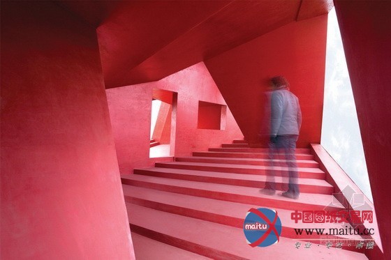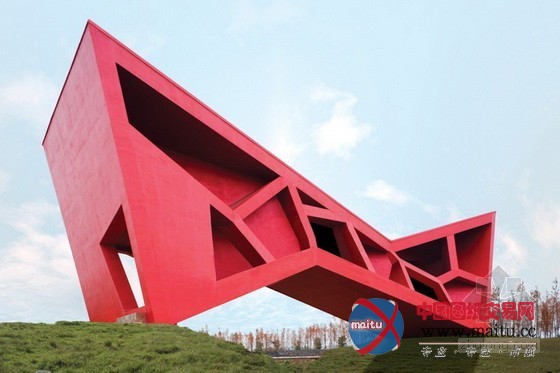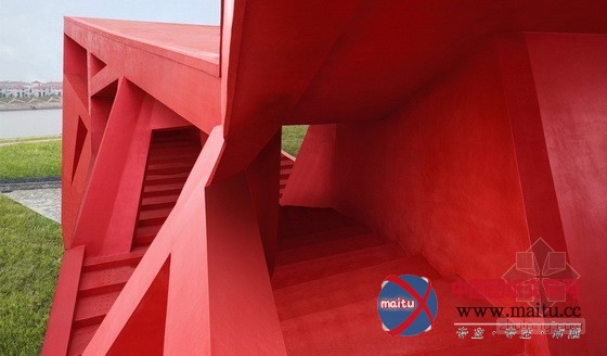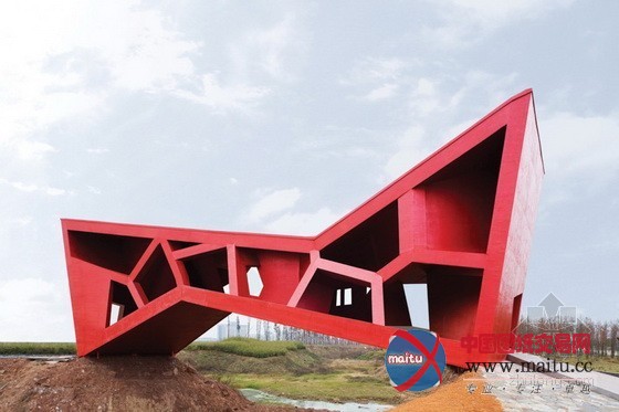 浙江金华建筑艺术公园内的红色茶室设计