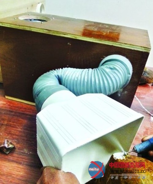 有了如许的雏形,他们还不知足,前后做了四个版本,才做成此刻的模样。箱子材料换成了木板,不但进风口有电扇,出风口和箱子里面也有电扇,里面还加装水槽,吸进箱子的粉尘,全数溶进水中。