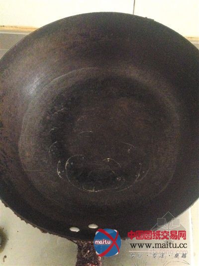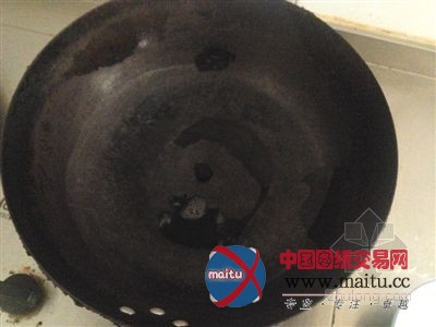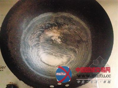 来自水龙头中的水烧干后,铁锅呈现“白底”。