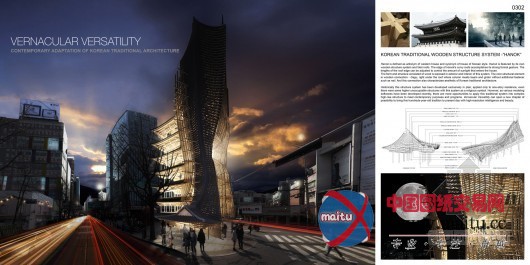 第一名由美国Yong Ju Lee的项目“方言多功能性”获得。设计从头诠释了当代综合高层建筑中韩国的传统。
