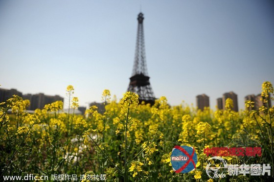 盗窟埃菲尔铁塔在油菜花的映衬下,别有一番风光
