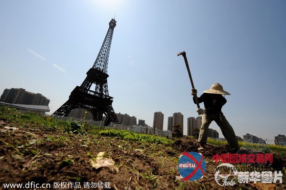 农平易近在盗窟埃菲尔铁塔下耕耘