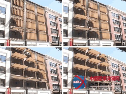 美国建筑系学生TylerShort发现了一套很是炫酷的遮阳举措措施。这些机械把持的遮阳百叶被安装在一个传统建筑的立面上,经由过程机械传动,百叶可以进行三维转换以适应不是时候的阳光晖映角度。在太阳初升或日落时分,百叶可所以通俗的竖向设置,而正午时分为了更有效地禁止阳光直射,百叶可以像起舞一般的转换成横向安插,而这一过程看上往的确是一种艺术享受。