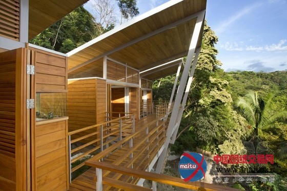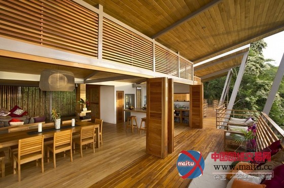 坐落在哥斯达黎加的Casa Flotanta是一个惊人的家,由本杰明 加西亚萨克斯设计,并在2013年完成。这栋室第的业主提出想众不雅海景的需求,可是地舆位置比较奇特,在斜坡上,那时对建筑师来讲是一个很是大年夜挑战,后来设计师将这个对大年夜挑战化为了优势,让斜坡成了依托住在的大年夜柱,因而有了这个如在空中的室第。全部室第非论是建筑仍是室内都采取了木质材料,木质的墙壁,木质的屋顶、木质的地板、木质的门窗,与全部本地环境融为一体。