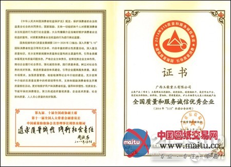 日前,从北京传来好动静,在中国质量查验协会主办的2014年“3.15”国际消费者权益日“质量和办事诚信承诺”专题勾当中,玉柴重工被授予“全国质量和办事诚信优良企业”和“全国质量查验不变合格产品”两项质量名誉。