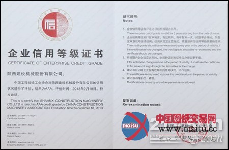近日,中国工程机械财产协会第四届三次会员代表大年夜会为首批经由过程评审并报商务部诺言工作办公室、国资委行业协会联系办公室存案的14家行业企业颁布了“AA***诺言等第”证书及牌匾。陕建机诺言等第被评价为AA***,并被授予了证书和奖牌。2013年是陕建机周全贯彻落实党的十八大年夜精力开局的第一年,公司积极应对市场改变,苦练内功,加快转型进级,承受住了市场波动的考验,获得各界的承认,此次被评为行业内AA***诺言企业也标记取陕建机在企业诺言扶植方面获得了本色性的功能。