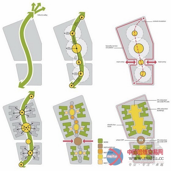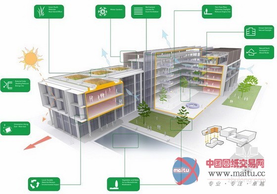 这一地标性建筑群由多个研究中间串连而成,为手艺人员供给舒适的人道化环境,供给配套的安保、维修及能源举措措施,知足园区严格的手艺需求。不但为员工供给绿色的糊口举措措施,这一“工作中间”还配备了一个巨大年夜的水轮回系统和天然过滤系统,使园区的雨水和中水获得充分操纵。经由过程对建筑群朝向的精心安插和对太阳能的研究,园区获得了杰出的被动节能结果,能有效操纵天然通风和采光节流园区能耗。该项目旨在达到美国绿色建筑委员会能源与环境设计前锋奖(LEED ND?)绿色社区金奖认证要求。据阐发,节能结果比基准要求还低45%。