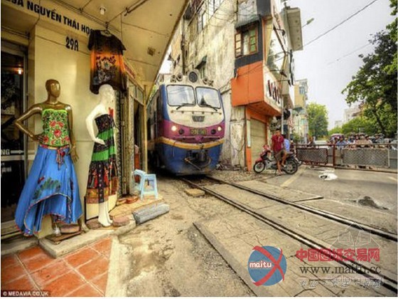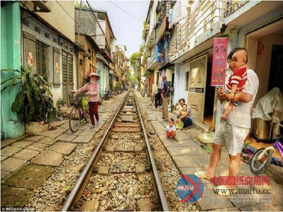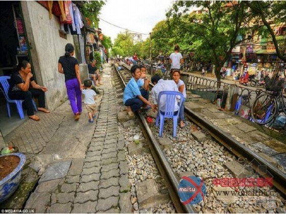摘要:据《每日邮报》4月6日报导,越南河内市中间的一条铁线路在居平易近区中穿越,狭小的轨道两侧是各类商展和平易近居的大年夜门,人们将轨道当作马路,在旁边摆摊、歇息。白叟们在铁轨旁的家门口抱着孩子歇息。河内穿城而过的铁轨旁有人在看报纸……