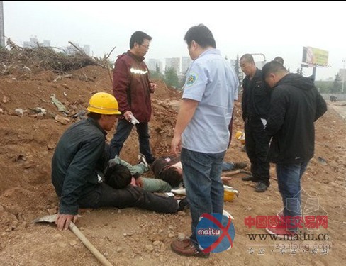 10分钟后,工地涌进了200多不明身份的人,开来5台装载机,要填埋他们清理好的坑道,并扬言“人赶快上来,不上来就把你们活埋了。”还没等他们反应过来,两边就产生了肢体冲突,工人们也挨了打。同时,5台装载机开端铲土就往坑道里倒。“土一会儿就倒了出来,坑道里很是混乱,仓猝中逃出几人,还有6人被活埋,此中就有马老板,还有4人全身被完全掩埋,几近看不见身影。”图为赶到现场的急救人员扣问平易近工受伤环境。