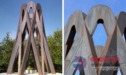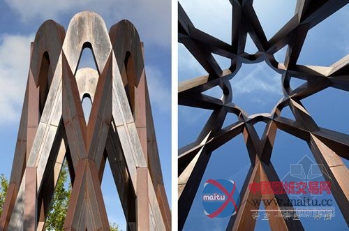 红铜色的钢布局鹄立在丛林深处的一块空位内,Javad Nurbakhsh本人在生命的最后阶段就是在这里渡过的。高塔从地面基座不竭向上延展,并凸起分层设计,各部门的连接处都构成了近似三角的切割外形,这些透露在阳光下的红铜在不竭氧化的过程中色彩也闪现出深浅不一的改变,给人以期间沧桑感。