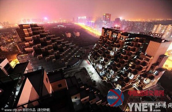 2014年4月14日晚,夜幕下的江苏省昆山市花桥国际商务城楼盘“游站”,这座设计奇特的楼盘往年被网友吐槽“金字塔”楼激发遍及存眷。时隔近一年,摄影师14日晚实地探访发现,“金字塔”楼盘扶植已周全落成,有良多业主开端进行室内装修进住,在夜幕下,极具现代气息的奇葩建筑“金字塔”楼尽显“另类”风度,成为花桥国际商务城新地标建筑。