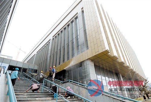 当天在北侧场馆内,工人们正在试安装电动窗帘,“全景式”落地玻璃窗高约12米,这个高度为安装带来难度:“万一窗帘被风吹离轨道,就有可能影响电动节制,所以我们考虑在背后拉根铁丝加固。”现场工作人员介绍。工作人员按下手中远控器,浅黑色的窗帘从房顶垂垂降下,遮光结果杰出。