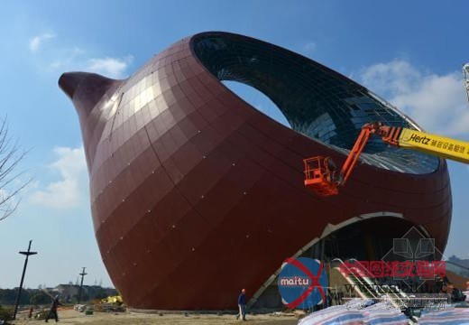 图为茶壶造型的无锡万达文化旅游城的揭示中间项目