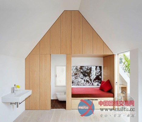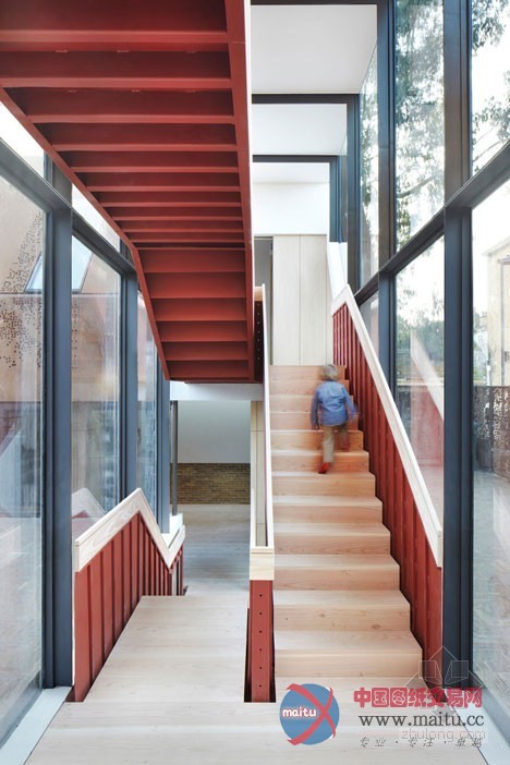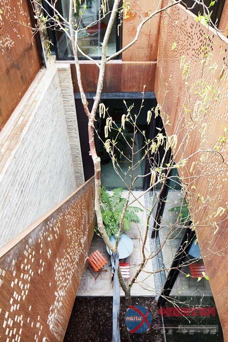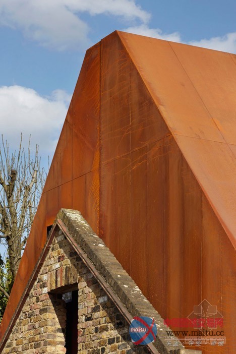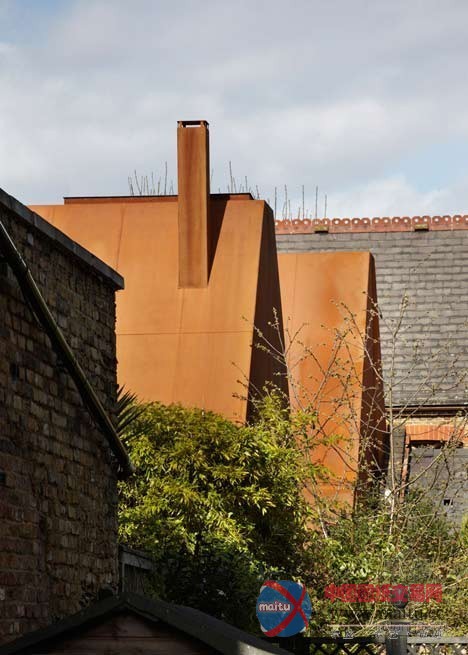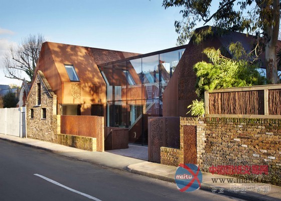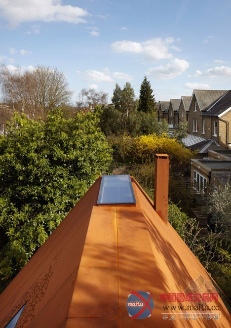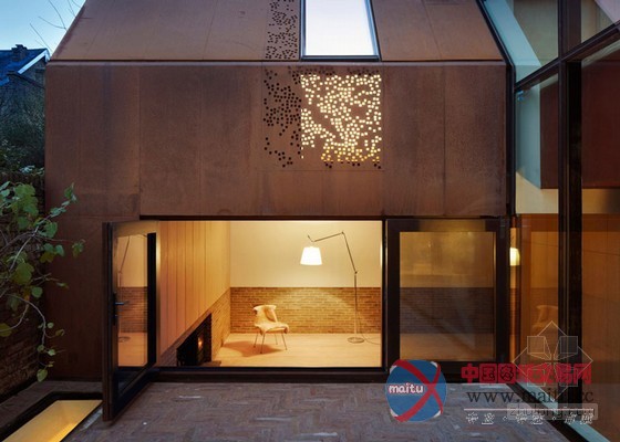 客户想供给一个让孩子们在房子里奔驰的场合,夏天可以在户外用餐,社交空间要供给恬静的角落,地下室则安插晒洗衣等功能房。是以,建筑师遵循客户想要的功能空间进行布局,同时设计多种线路和不合楼层之间的内部景不雅,觉得成人和儿童供给愉悦、令人印象深切的空间。该室第采取了简单的布局平面,以充分操纵有限的场地,并降落建筑在街道景不雅的体量,同时回应这家人的糊口模式,空间非正式而丰硕,由两个矩形构成。较小的矩形设置在建筑后背,并下沉1米,每个翼楼的底层都设有糊口区,顶层设卧室。连接两栋翼楼的是一个玻璃廊道,让光线倾泻进屋内,同时供给内部空间新颖的空气。该建筑采取了深橙色的耐候钢和穿孔板表皮,构成班驳的光影结果,并与周围的英国皇家植物园的秋季气调相调和。室内采取了橡木贴面镶板和Dinesen地板,构成轻盈、天然的色调。