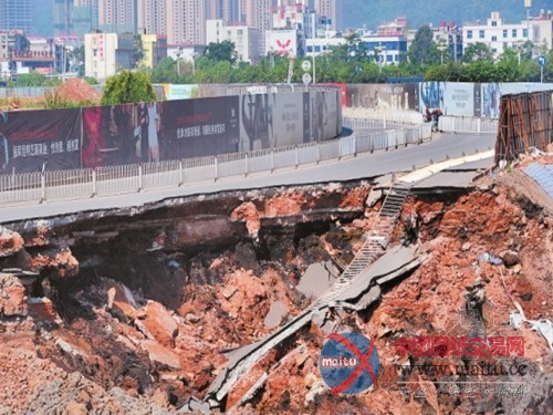 在道路的中段,路面塌陷出一长约40米、宽约4米的大年夜坑。因为事发路段为双向4车道,大年夜坑几近据有了道路由东向西出城标的目标的两条车道。现场周围还有一条长约30米、宽约50厘米的裂痕。而在道路旁的一个工地内,可以清晰地看到路面已坍塌约7米摆布,仍不时有碎石掉落落,坍塌道路边的隔离栏则掉落落至工地斜坡上。