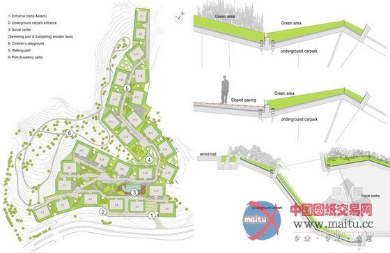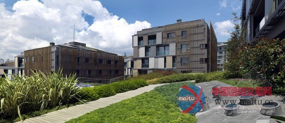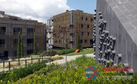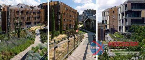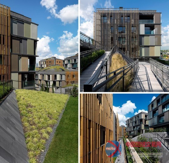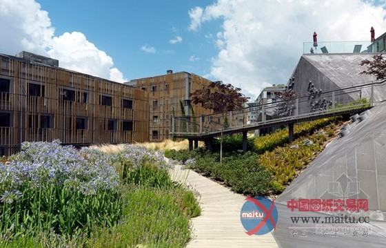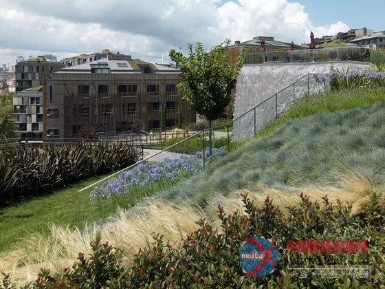 该屋顶花圃和凡是的屋顶花圃不合,它几近笼盖了这个复杂年夜社区的所有路面,而不是单单呈此刻某个室第塔楼的顶部。起伏有致的折面与上面的道路和折坡采取了统一的说话。石材,木材,植物构成对比却又同为天然材料,相当***。农业景不雅也被引进此中,为这片无限潜力的不雅赏景不雅增加了更多可能性。