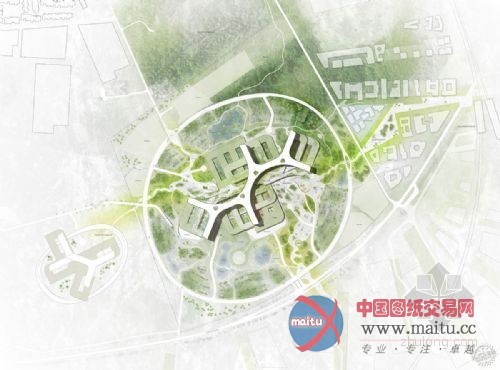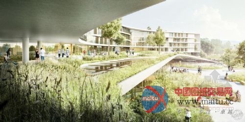 整个建筑布局紧凑,物流高效,交通流线距离短,从一定程度上节省了医护员工交通的间,也使得他们有更多时间把注意力重心放在患者身上。整个建筑被大量绿色景观紧紧包裹,种满绿植的屋顶花园与庭院交织为一体,建筑造型现代时尚、线条流畅匀称。设计师期望能创造一个与周围自然、人文环境融为一体的大型建筑,并通过这样的融合为患者、医生,以及当地居民提供一个安全、舒适的治疗、工作环境。