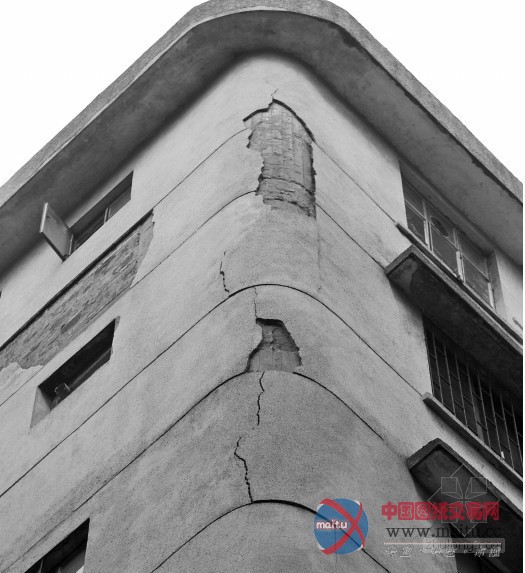 莲柏新村住宅中距离金鹰广场最近的房屋,仅一墙之隔,10米距离。南都记者走访发现,莲柏新村多栋楼房都贴有“外墙脱落,行人勿近”的提示语。在该社区一栋楼房外墙上,几块水泥表面已经脱落,红色的墙砖裸露在外,外墙面上还有几条长长的裂纹。