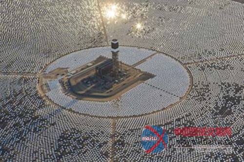 这张照片是位于美国加州莫哈维沙漠的伊万帕太阳能发电站,计划总发电量为392MW。和光伏电池发电不同,这是一个太阳能热电站——173500个高效镜子将阳光反射到140米的高塔顶端,产生的热量驱动蒸汽轮机发电。某种意义上,这是阿基米德用镜子烧毁战船传说的复兴。不过路过的飞鸟就要倒霉了。