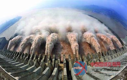 这张鱼眼效果照片是2010年7月28日三峡泄洪的场景。三峡大坝装机总容量高达22500MW,是世界上最大的水力发电站;实际发电量约在10000MW左右。