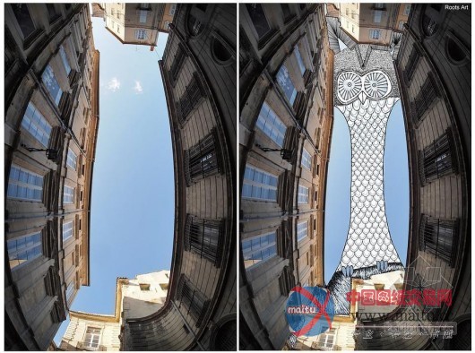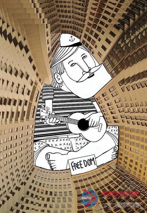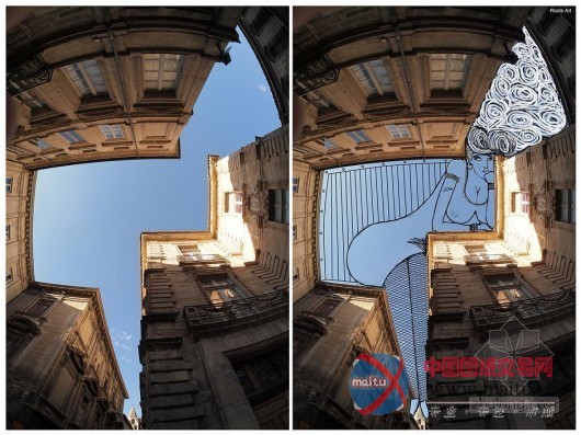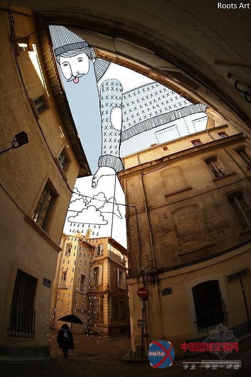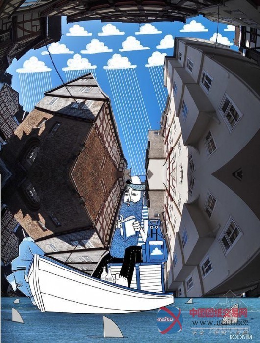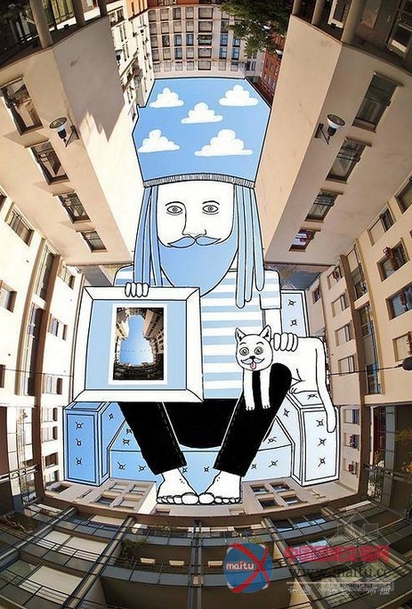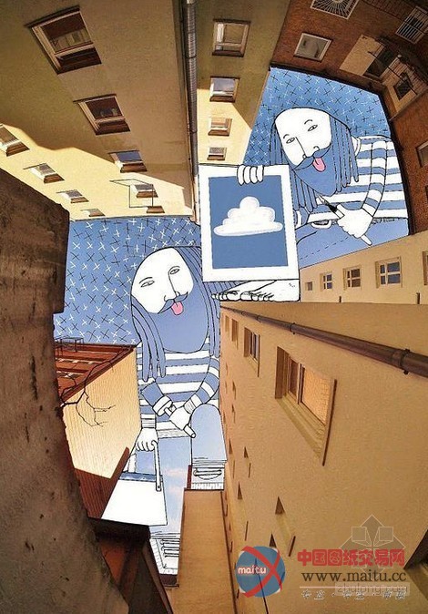仰望天空,在城市高楼的缝隙中,你会看到些什么呢?法国艺术家Thomas Lamadieu被这些空间吸引,然后创作出了一系列有趣的天空绘画。他通过鱼眼镜头收集幽暗密集的城市景观,在屋顶围合的天空中通过俏皮的插画填补了这些负空间。Thomas通过他异想天开的艺术态度证明了“我们可以用无穷的想象力构建新世界”和“用不同的角度去观察我们身边的城市建筑和日常生活环境”。