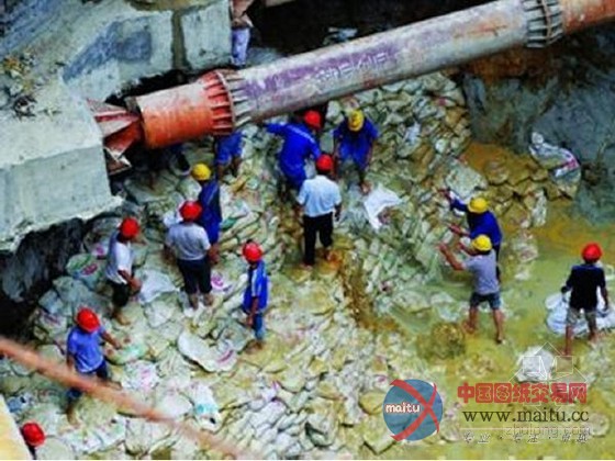 所谓的地下连续墙,就是为了在地面以下为截水防渗、挡土、承重而构筑的连续墙壁,应对这一特殊地质,施工方对这段的地连墙进行了加固,每隔6米间,就用“工”字型钢固定住。当时,基坑已经下挖到19米,坑内积水排空,坑外水压便非常大,坑外水击穿了地连墙缝隙,涌了出来。现场施工者介绍,当时涌水口面积很小,大概只有一厘米宽度,但因为水压很大,水渗速度非常快,由于高压水枪喷射。建设部门第一时间启动了应急预案,首先是在事发涌水口处垒沙袋,迅速制止涌水。100多名抢险人员连夜搬运的沙袋,加起来共有几千袋。随后,便是从基坑外侧和内侧打孔注浆,把这一渗水点封堵住。