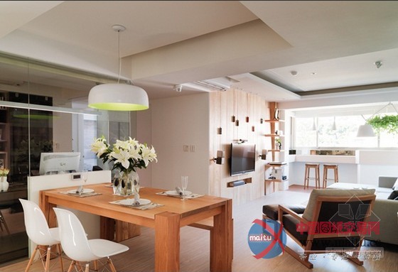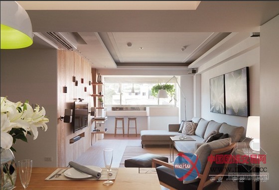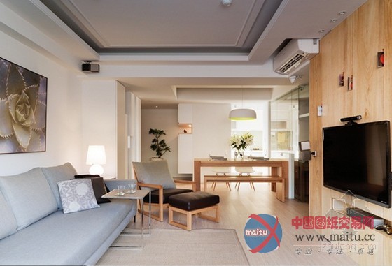 这套台湾现代住宅设计,由演拓空间室内负责设计。由于原本居住的房子太小,已经不足以一家三口使用,因此屋主决定搬到坪数够大、采光佳、又有山景的10多年中古屋。在「自然」的主轴下,大量使用木头材质的建材,营造清新、不造作的氛围。全屋铺设实木地板,当赤脚踏在地板上时,能感觉到温暖、舒服、自在;客厅的电视墙以梧桐木皮打造,墙面上并设置了CD架,除了可以随手取得喜爱的CD,也让原本单调的墙面多了活泼的装饰。