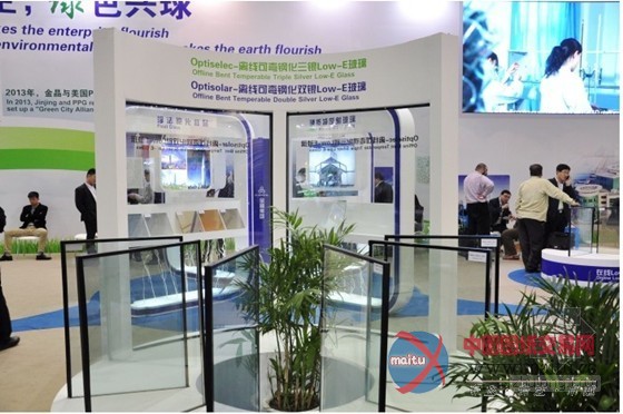集团携双银、三银、机车玻璃、压花玻璃、纯碱等系列产品亮相此次展会,是展会中最大的展位之一。展位位于E2展馆,靠近玻璃展主入口;紧邻展馆7号门,位置优越;占地面积达300平米,加之搭建的吊顶格外吸引人,客流量非常大。展台的整体设计搭建采用简洁明了的风格,旨在表明金晶在“智慧兴企、绿色兴球”战略思想引领下,用智慧的思维来开拓创新、低碳、绿色发展之路。节约耗材与成本,推动引领国内外绿色材料绿色建筑绿色能源的发展。LOW-E低辐射节能玻璃亮相展会,让大家在了解节能产品的同时,也对未来绿色建筑玻璃的应用得到了更加充分的认识。金晶不仅是节能产品的提供者,更是节能玻璃使用问题解决方案的提供者,展现了金晶负责任的良好形象,得到了众多玻璃客户、专业观众以及游客的广泛赞誉。伴随着玻璃市场低迷,金晶将牢牢把控市场动向,不断开发出高技术含量、高附加值的新产品,努力增强集团的核心竞争力与现实竞争力。