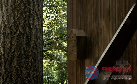 小鸟在这栋楼宇里也有它们的房子(注:建筑朝南的一面设计成9个“巢”形突起,如积木般凹凸不平,“巢”的外部搭建了一些真正的鸟舍,吸引鸟儿到此居住,人鸟共存)。谢谢它们为房子增添了野趣。这个案子被中村命名为“跳舞的树、歌唱的鸟”(Dancing trees,Singingbirds)。