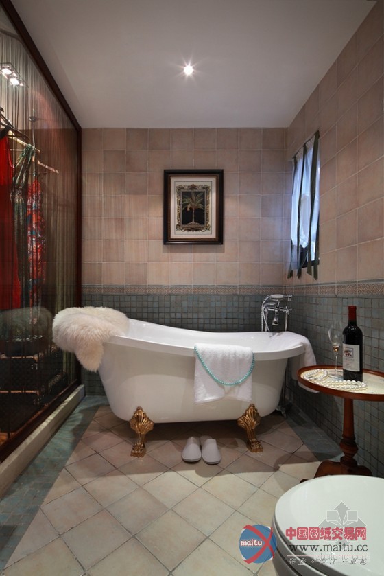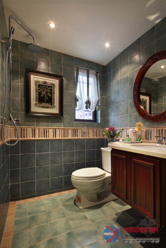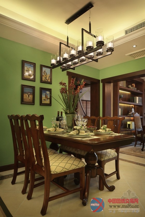 设计材料:环保肌理漆、花岗石、实木百叶、仿古砖、金花米黄、马赛克等